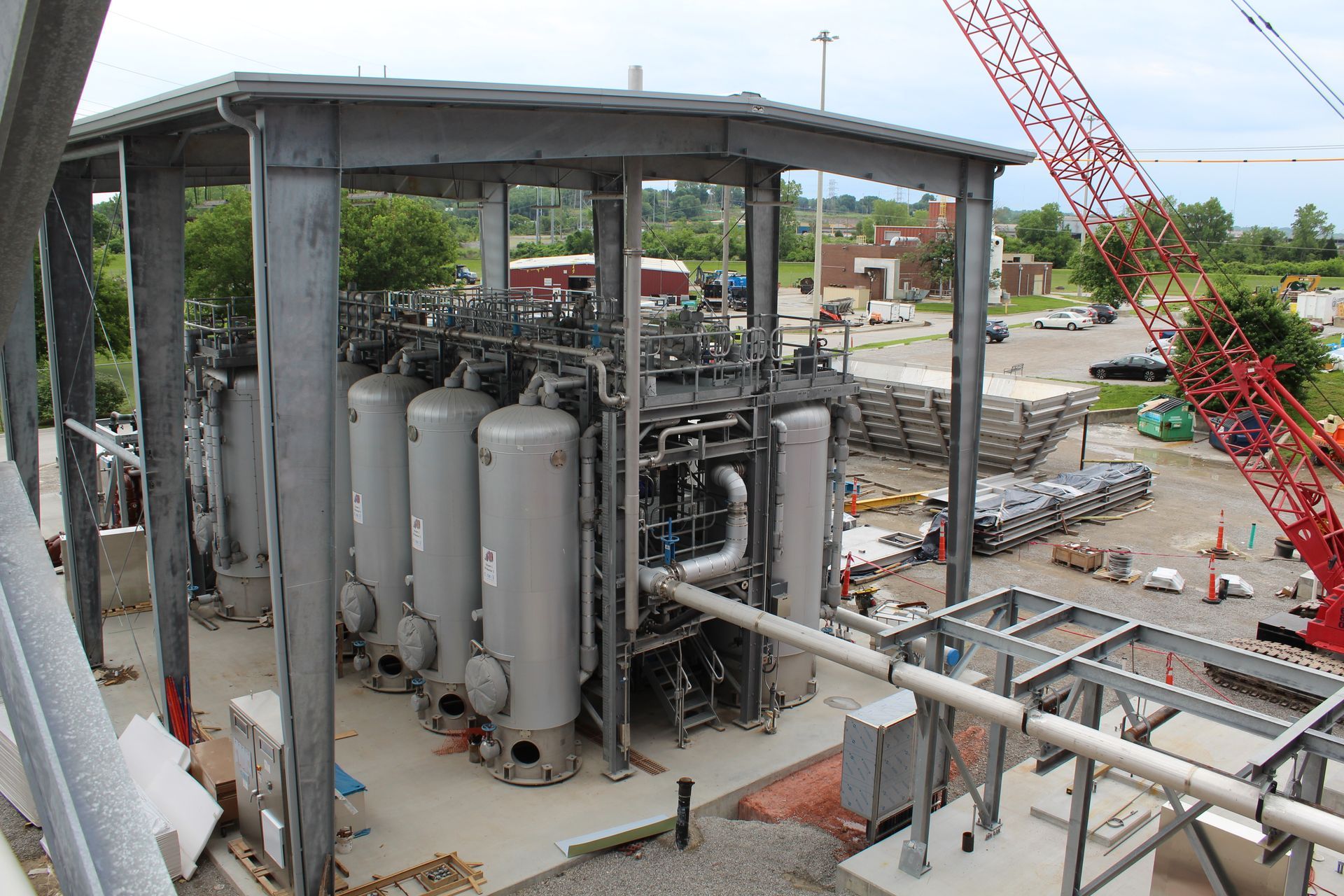 The Blue River Wastewater Treatment Plant was upgraded and renamed the Blue River Bio-Solids Facility, which now features the Thermal Hydrolysis Process (THP), a first for the Midwest, to recycle human and domestic waste. DuBois Consultants provided structural engineering and design services on the THP and gas flare foundations, east and west holding tanks, electrical building foundation design, digester building renovation, several site equipment foundation pads, pipe supports, and more. In addition, our team provided construction administration services during the construction phase. With the conclusion of this project, our team has begun work on the Blue River Grit Removal & Fine Screens project at the same site.